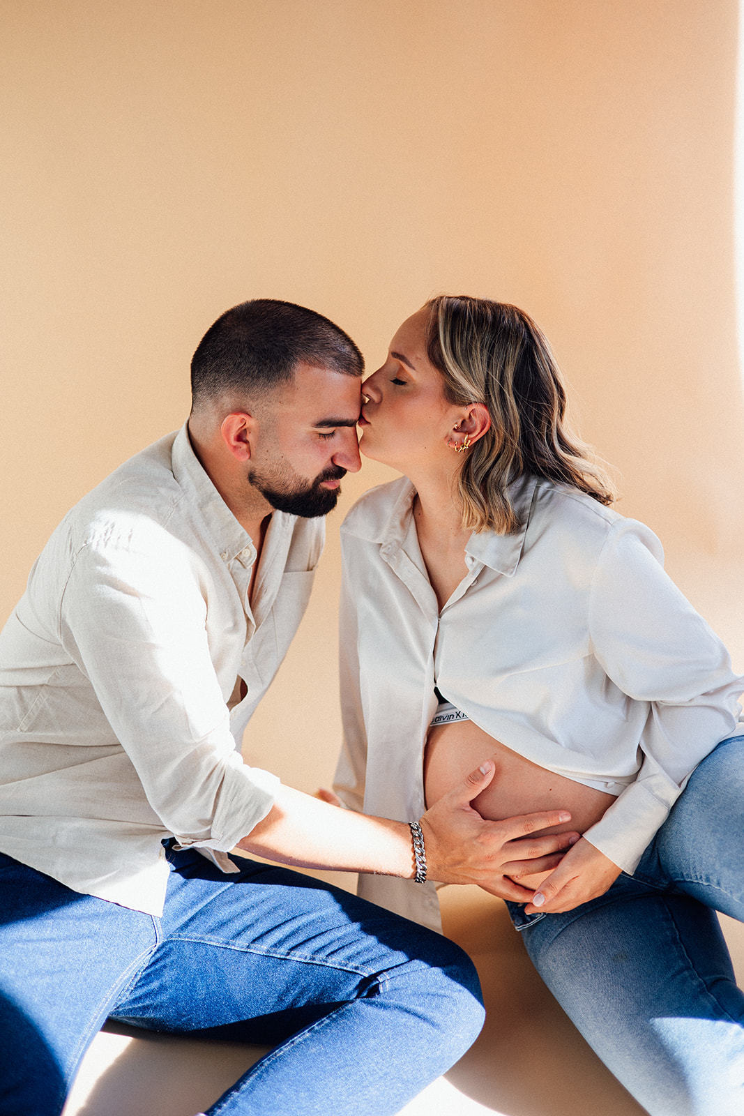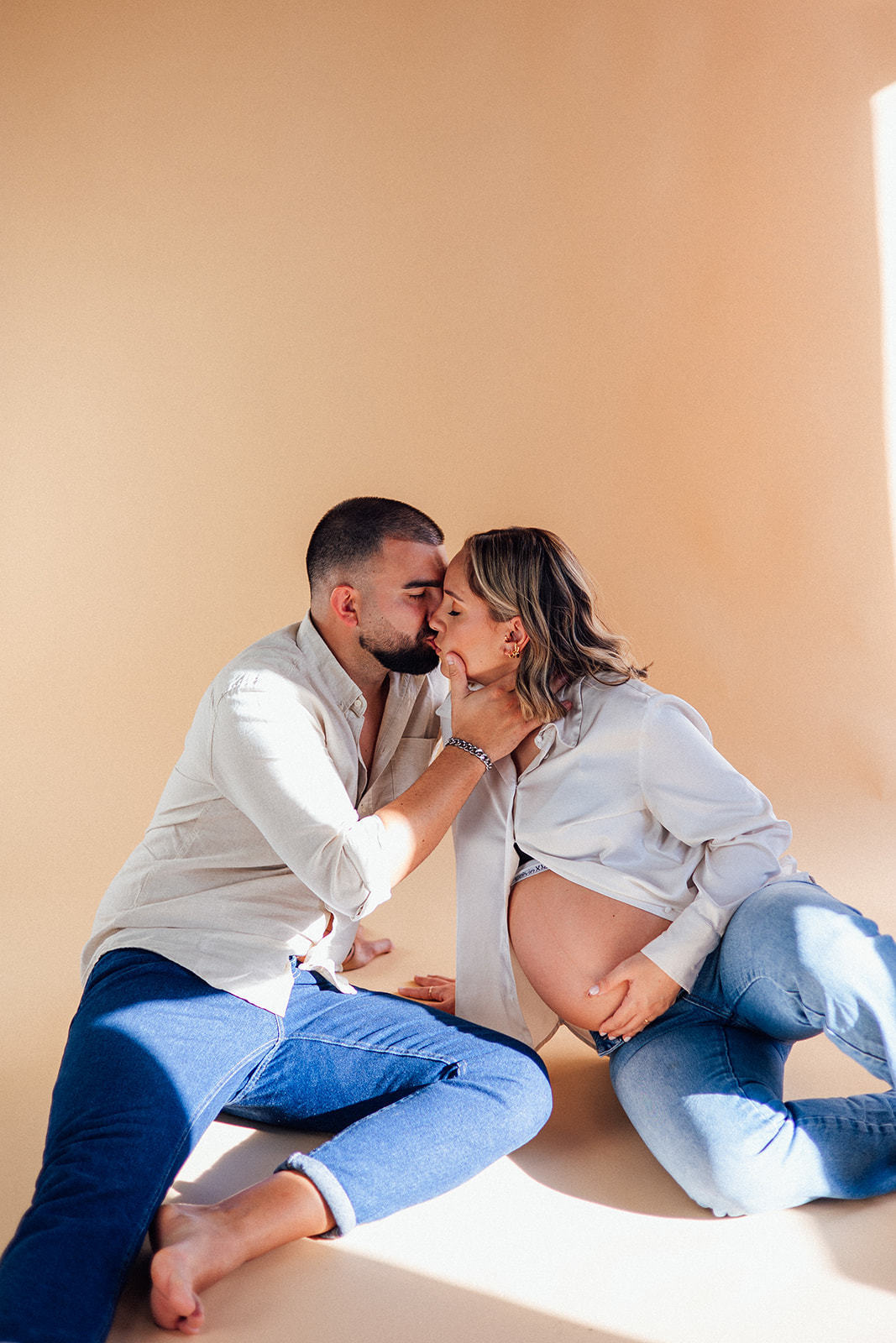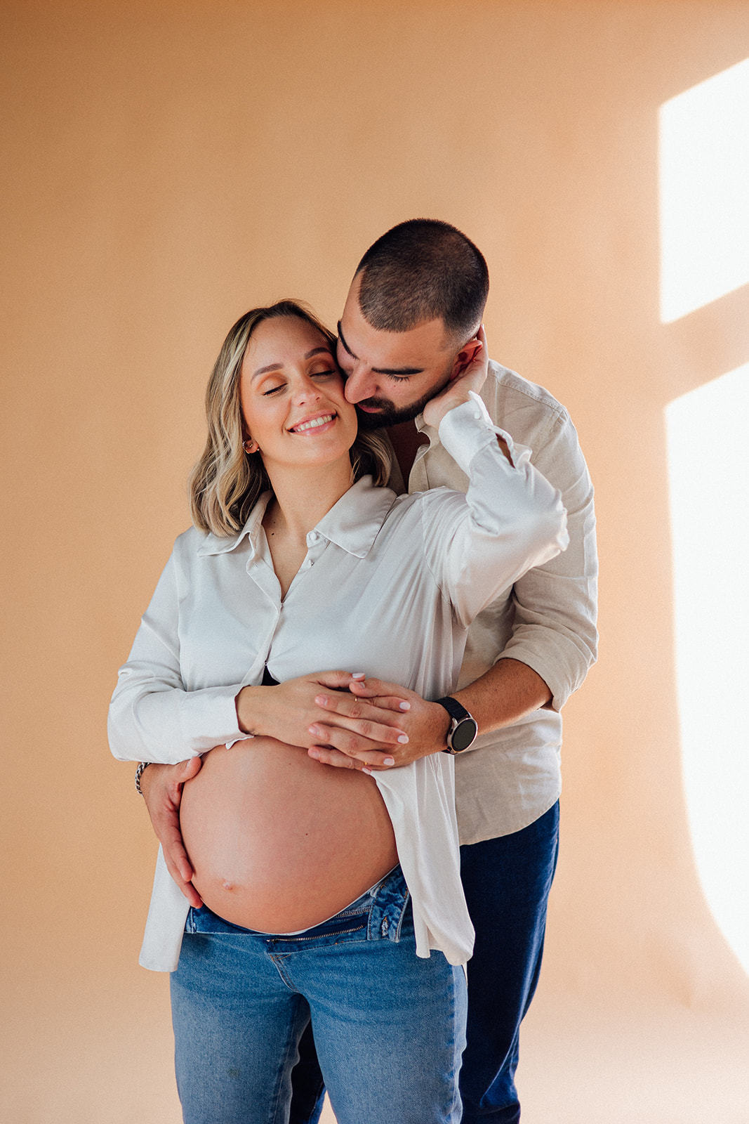Nesta sessão, no meu antigo estúdio, a luz natural entrou suave pela janela… e com ela, a doçura de uma nova vida a crescer.