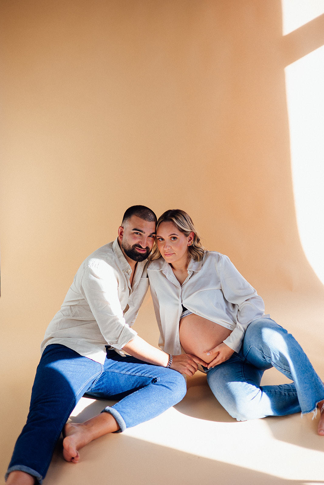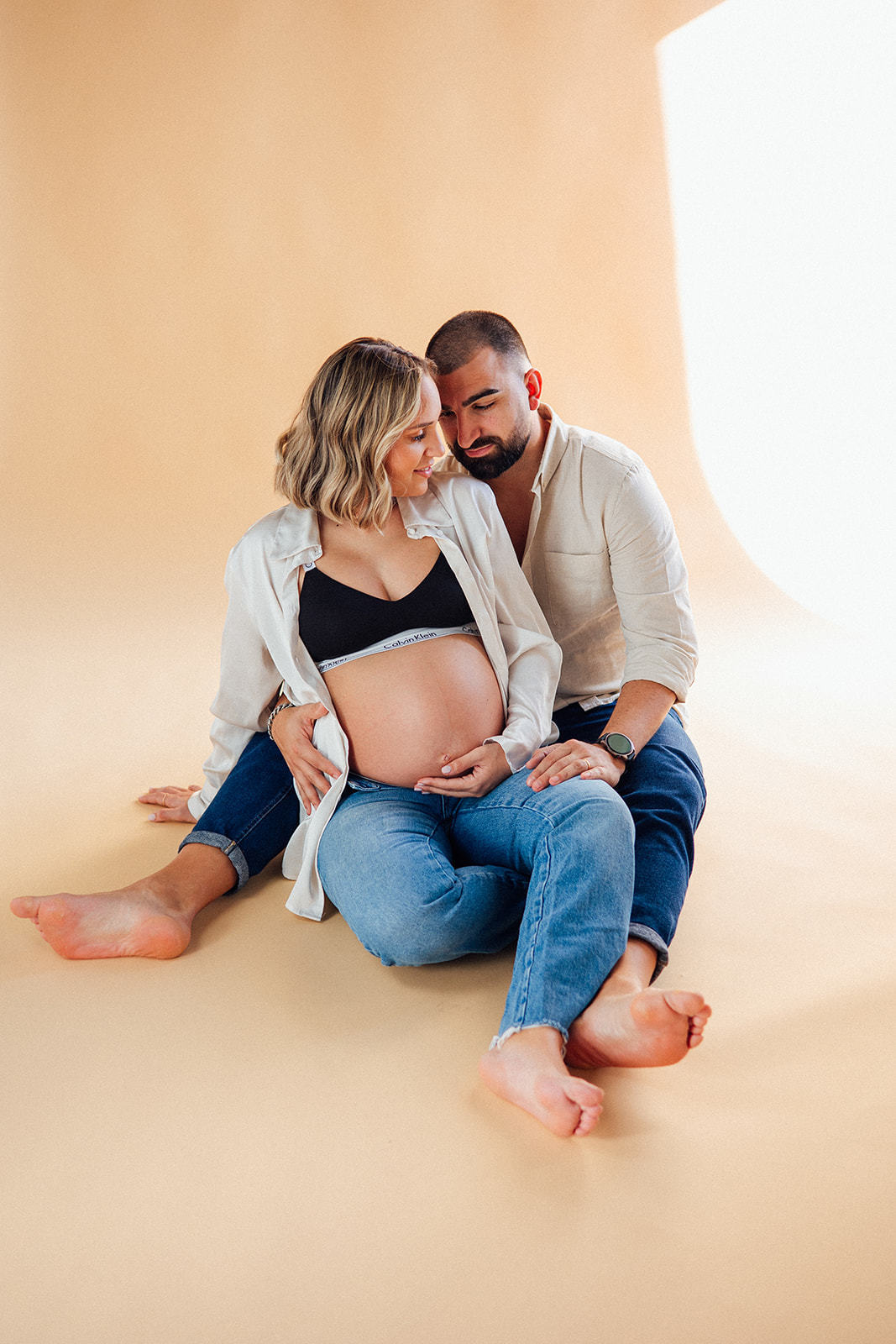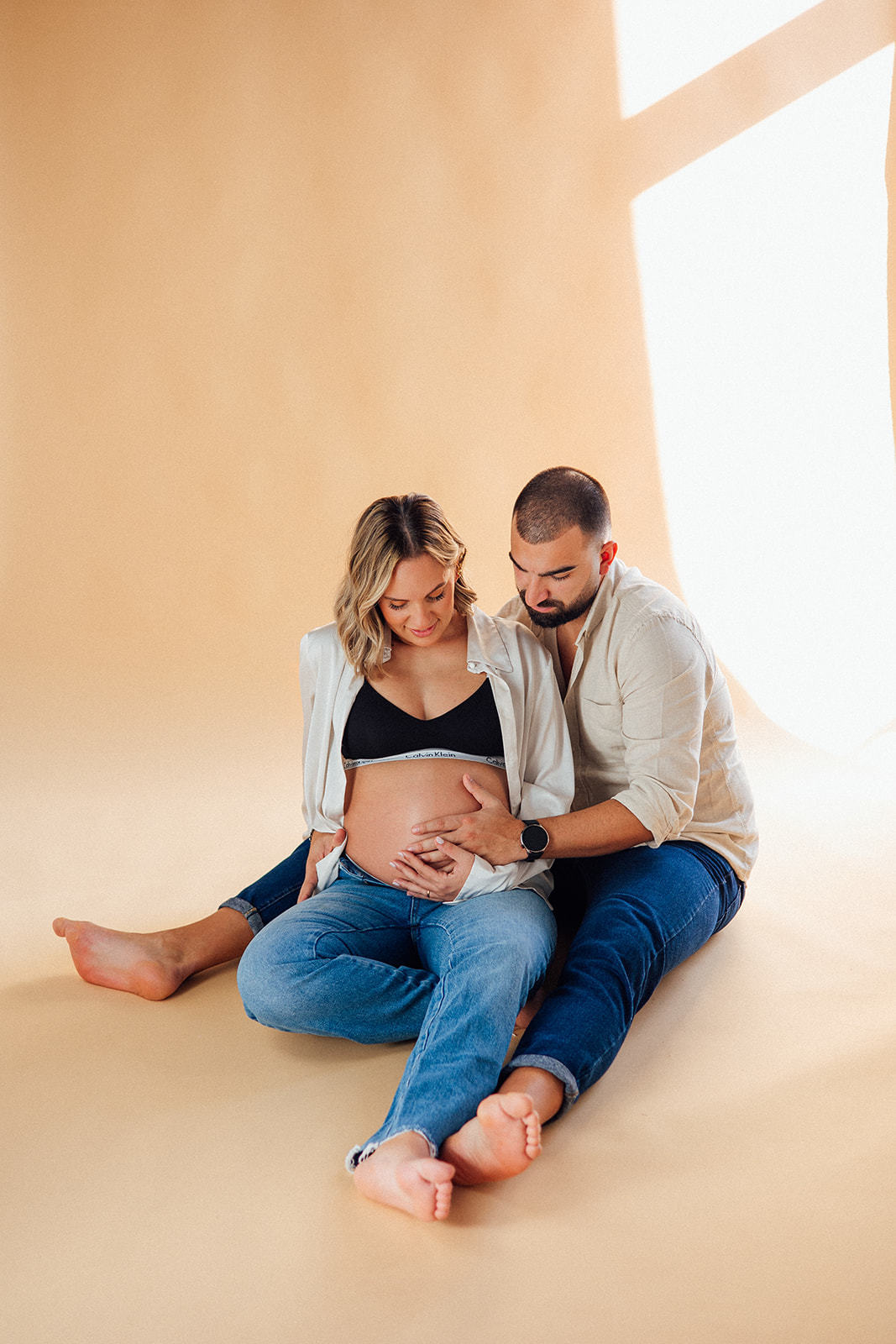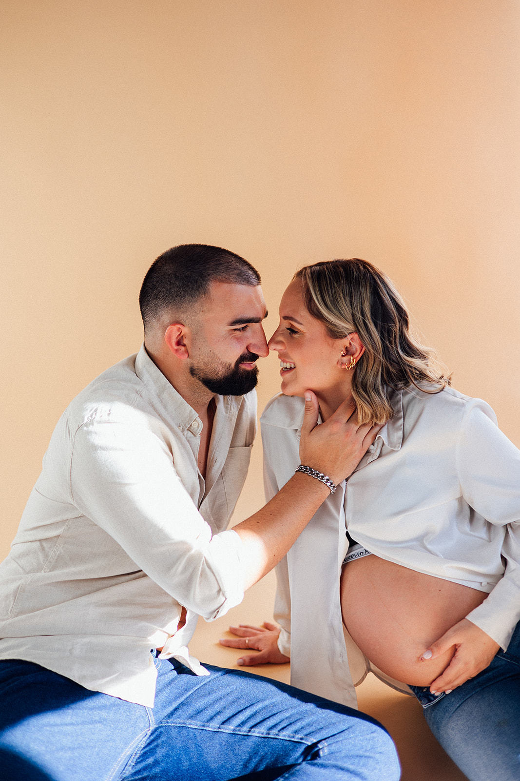 Nesta sessão, no meu antigo estúdio, a luz natural entrou suave pela janela… e com ela, a doçura de uma nova vida a crescer.